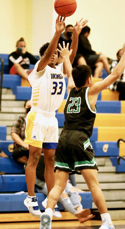Hilo almost came undone in the third quarter because of poor ball-handling. One of the Viking guards committed three turnovers, the last which led to Makanui’s 3-pointer to get the Wildcats within 22-20 with 4:18 left.