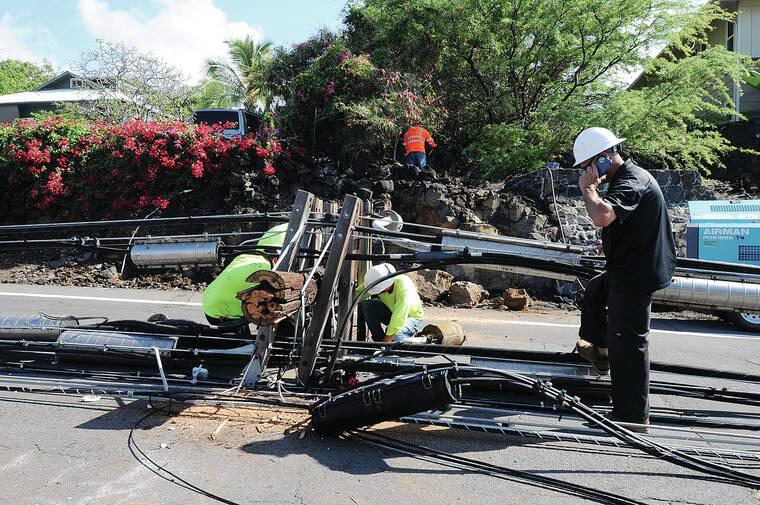 Once HELCO has new poles in place and power restored, Hawaiian Telcom and Spectrum will work on restoring service.