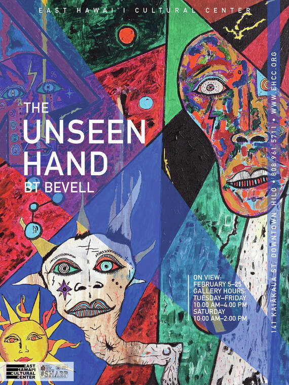 Shape-shifters, Osiris, the Council of Nine, and other mythological beings will be on display in ‘The Unseen Hand’ exhibit at the East Hawaii Cultural Center during February. “I paint them to honor them, to ask if you’ve seen them,” said artist BT Bevell.