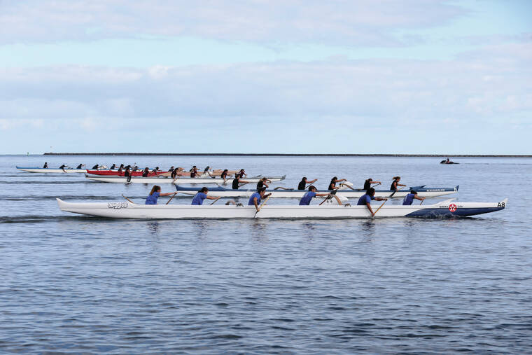 “We don’t care how we finish throughout the season. Next week is what we’re looking toward,” HPA coach Mesepa Tanoai said. “We have our combination and will try to get a couple (titles) at next week’s championships. We went in lane 1 (close to the shore). It’s a little different. You don’t get to line yourself up with the two flags to have a target. The wind and the tide change was a little hard to read, so it was a little challenging for the kids. We didn’t know what to expect. It’s always new, but they made it happen.”