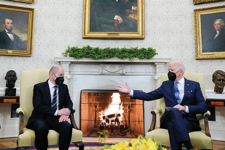 WASHINGTON — In a flurry of diplomacy across two continents, President Joe Biden met with Germany’s new leader Monday and vowed the crucial Nord Stream 2 Russia-to-Germany gas pipeline will be blocked if Russia further invades Ukraine. Russia’s Vladimir Putin retorted that the U.S. and its allies are the only ones talking invasion.