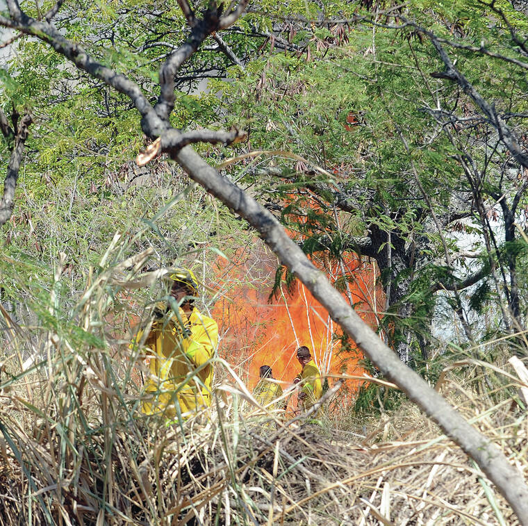 Units were called back to the scene Wednesday afternoon after reports of a flare-up, and quickly doused the flames. A single-lane closure was implemented on Kuakini Highway as firefighters worked the fire.