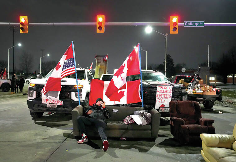 For the fourth straight day, scores of truckers taking part in what they dubbed the Freedom Convoy blocked the Ambassador Bridge connecting Windsor, Ontario, to Detroit, disrupting the flow of auto parts and other products between the two countries.