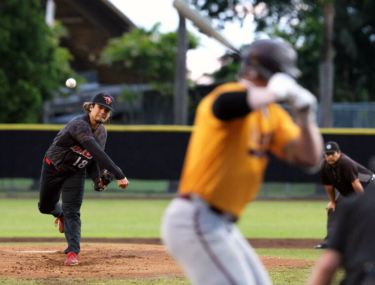 “He’s no-nonsense. He just does the job,” coach Kallen Miyataki said. “There’s nothing flashy. He comes right at you. He’s crafty and pretty sneaky. He’s got a good breaking ball. His fastball explodes and tops out at 90 mph. He can carve you up at 86-87 with breaking stuff. We’ve been working quite a bit on pitchability.