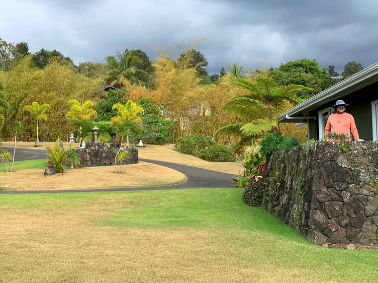 Photo courtesy of Voltaire Moise Kona’s three-month drought is taking its toll on unirrigated farms and home gardens even at 1,500 feet elevation. Until this dry season, rainfall was abundant for the last 4 years, so shallow rooted lawns are the first to suffer in the landscape. Note that the bamboo in the background is suffering stress as well.