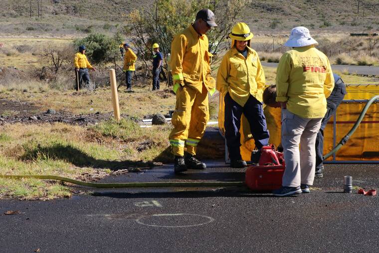 Training included 90 West Hawaii volunteer firefighters and volunteer firefighters from Waikii Ranch. They were among the firefighters who helped bring the Mana Road fire under control last summer.