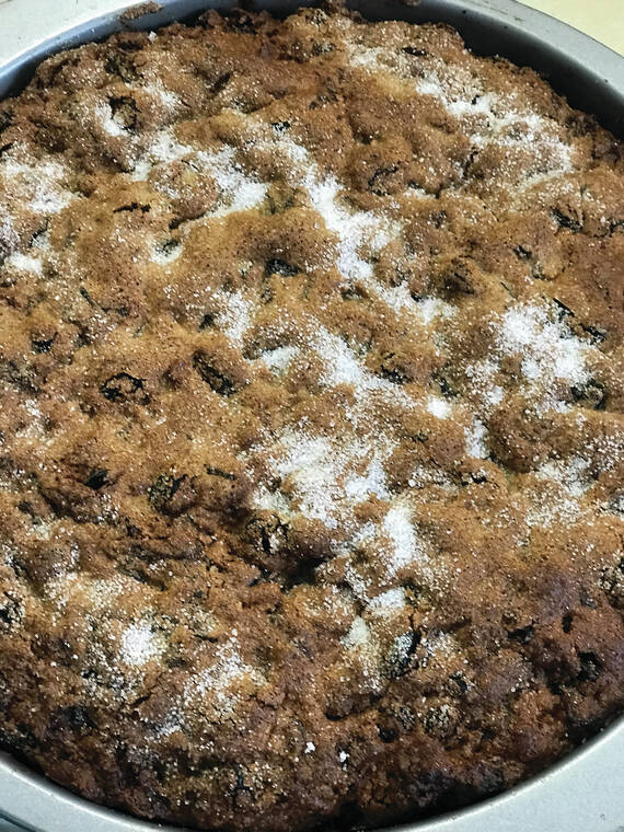 Preheat the oven to 325 degrees. Lightly grease an 8-inch round cake pan, at least 2 inches deep.