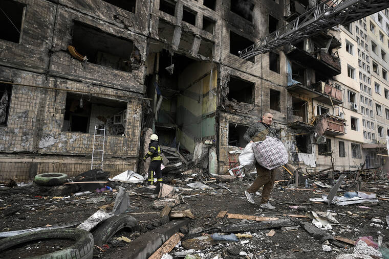 Russian artillery fire also hit a nine-story apartment building in the northern Obolonskyi district of the city, killing two more people, authorities said.