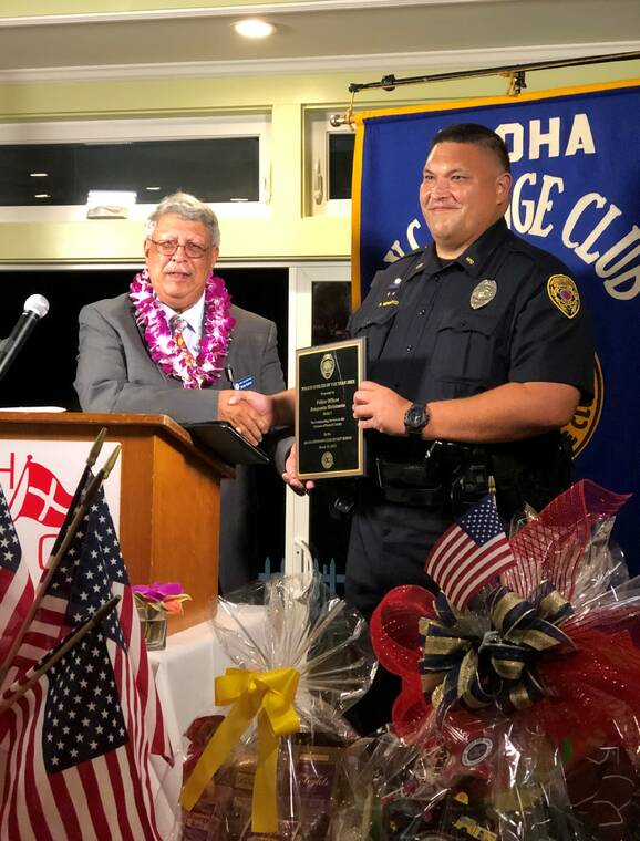 Police Chief Paul K. Ferreira thanked the Aloha Exchange Club for honoring Nishimoto, and their unwavering support of our officers throughout the years.