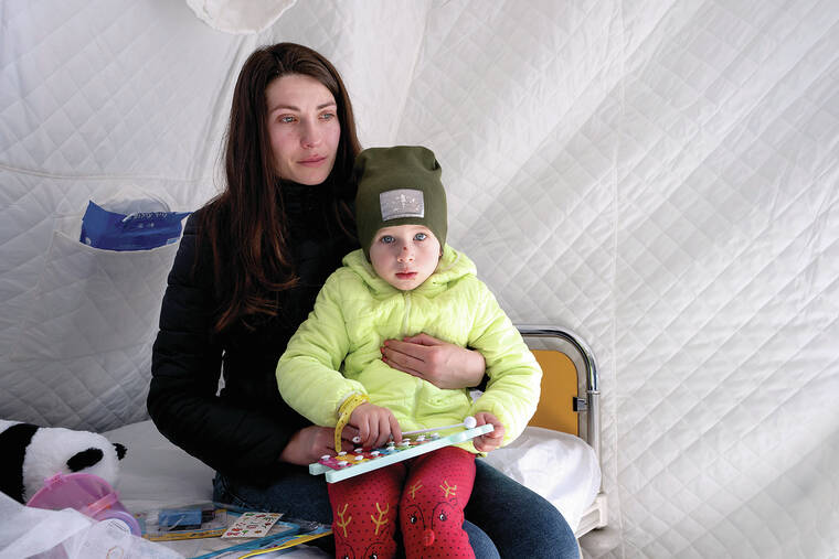 MOSTYSKA, Ukraine — Russia’s invasion has displaced half of Ukraine’s children. On a hospital bed in a town close to the border with Poland, a little girl with a long blonde braid and dressed in pink is one of them.