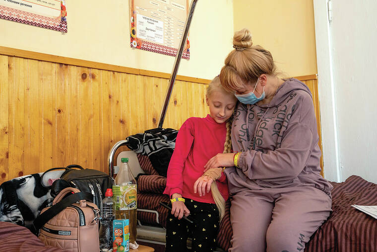 MOSTYSKA, Ukraine — Russia’s invasion has displaced half of Ukraine’s children. On a hospital bed in a town close to the border with Poland, a little girl with a long blonde braid and dressed in pink is one of them.