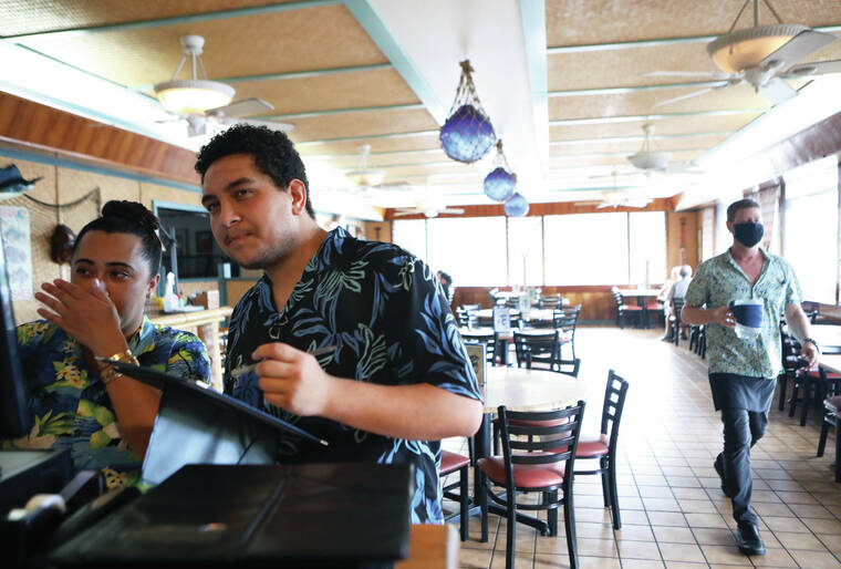 “I just decided about an hour ago I would try to work without a mask,” said server Nathan Kamakea-Napihaa. “It feels nice, but also feels kind of weird.”