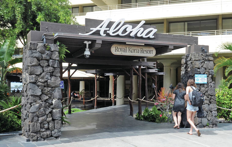 Guests enter the Royal Kona Resort in 2021. Hotels on the Orchid Isle in February reported occupancy of 77.9%. (Laura Ruminski/WestHawaii Today file photo)
