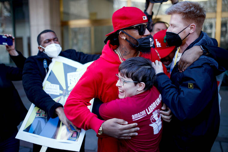 NEW YORK — Amazon workers in Staten Island, New York, voted to unionize on Friday, marking the first successful U.S. organizing effort in the retail giant’s history and handing an unexpected win to a nascent group that fueled the union drive.