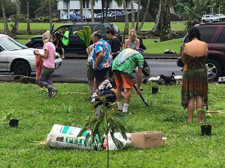 Gene Tamashiro and the others — 58-year-old Joanna Pike of Laupahoehoe, 42-year-old Aero-Travis Olson-Coomer of Pahoa, and 23-year-old Mia Pavao of Pahoa — were cited on what the DLNR called “a variety of charges, including unlawful introduction of plant life on public property and altering geological features by digging into manicured grass.”