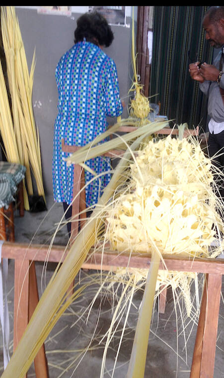 Photo courtesy of Voltaire Moise Azores artists crafting date palm leaves to be used during the Easter celebrations.