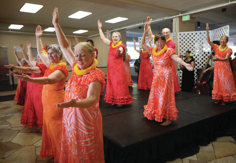 Under the direction of kumu hula Meleana Manuel, Halau Ke ‘Olu Makani O Mauna Loa performed dances for an enthusiastic crowd at the Hilo Hawaiian Hotel.