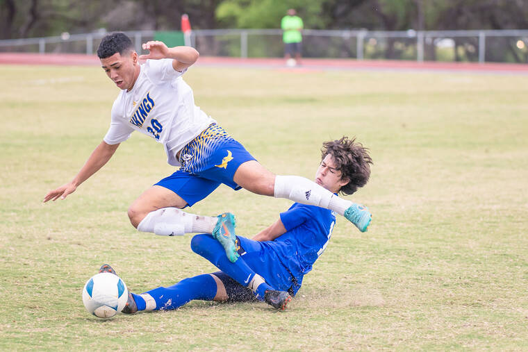The Warriors beat Hilo early in the season, but the Vikings reeled off 12 wins in a row, including a victory against Kaiser in the state semifinal in which Harman scored his team’s only goal in regulation and converted his try as the Vikings advances in penalty kicks. Seeking the school’s first state title, the final against Maui’s King Kekaulike got away from the Vikings, physically and emotionally, in a 3-1 loss.