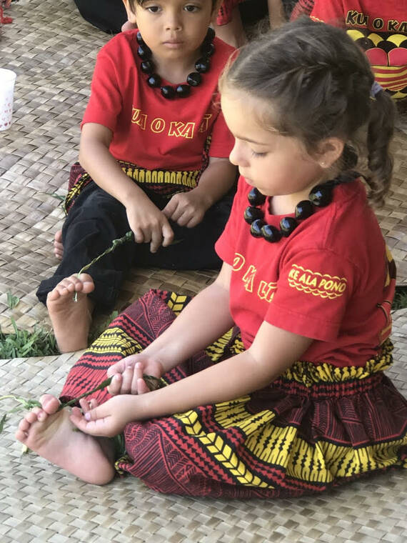 Photo provided by Kua O Ka La Pre-k students participate in one of the many events taking place in person at the Nani Mau Gardens campus in Hilo.