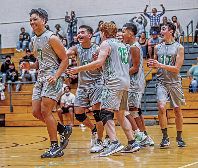 “Our boys, being up 2-0, they felt more energy coming into the third set; you could tell they had more energy,” said Konawaena assistant coach Ainsley Keawekane. “We just told the boys to have fun. Have more fun, talk more out there, enjoy the game.”