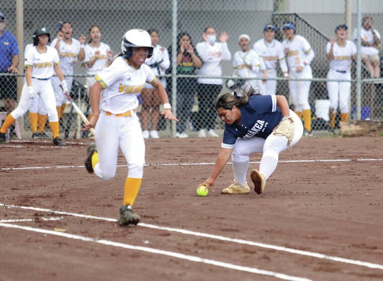 Waiki was intentionally walked twice with the bases loaded and finished 1 for 3 with three RBIs. Alameda went 2 for 3 with three RBIs, and Kiana Agpalza batted 2 for 5 with an RBI. Leadoff hitter Kawehi Augustin was 1 for 1 with four walks.