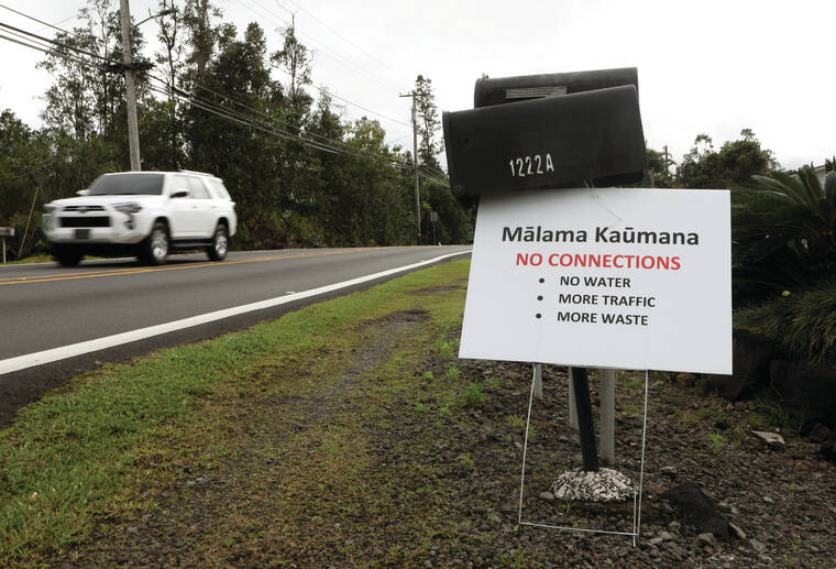 Kelsey Walling/Tribune-Herald file photo Signs that protest the potential Connections Public Charter School Kaumana campus are lined up in front of homes on Kaumana Drive.