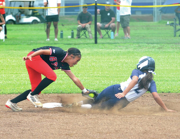 Kalea Huihui-Caberto was 3 for 4 with four RBIs and three runs scored for Menehune (11-5-1). Huihui-Caberto’s two-run triple helped Waimea score four times in the top of the first, and she singled in the fourth to bring in two more as Menehune tacked on six runs. Hunter Akita added a two-run double and finished with two hits and three RBIs.