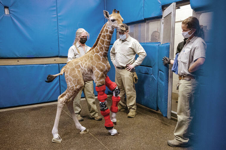 ESCONDIDO, Calif. — Over the past three decades Ara Mirzaian has fitted braces for everyone from Paralympians to children with scoliosis. But Msituni was a patient like none other — a newborn giraffe.