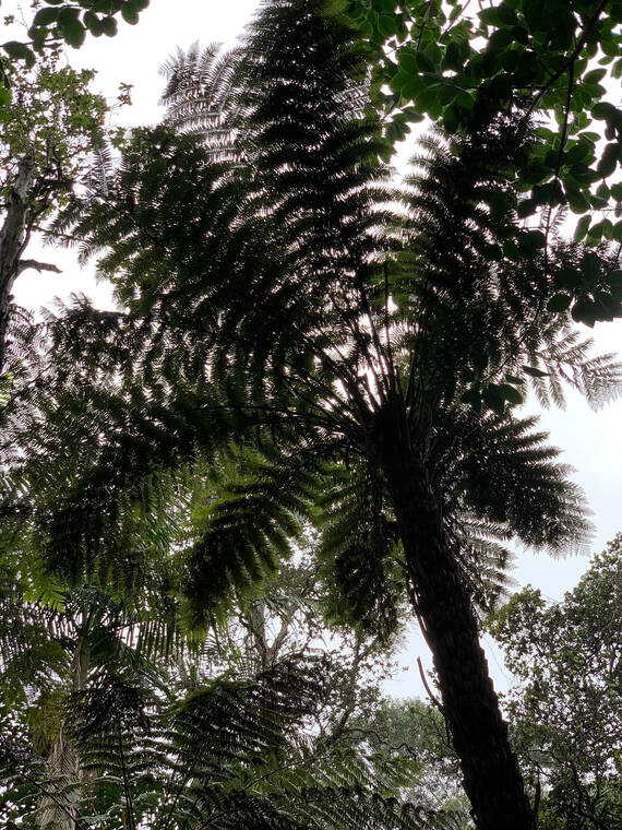 Ferns have been around for over 360 million years. Giant tree fern forests were common for millions of years but they gave way as flowering plants evolved to take their place. Today most of the nearly 800 species of tree ferns are considered endangered because of climate change. Even in Hawaii we see a fraction of the tree fern forests that existed before the 19th century. The introduction of pigs by early Polynesians and later the introduction of cattle played an important part of forest destruction.