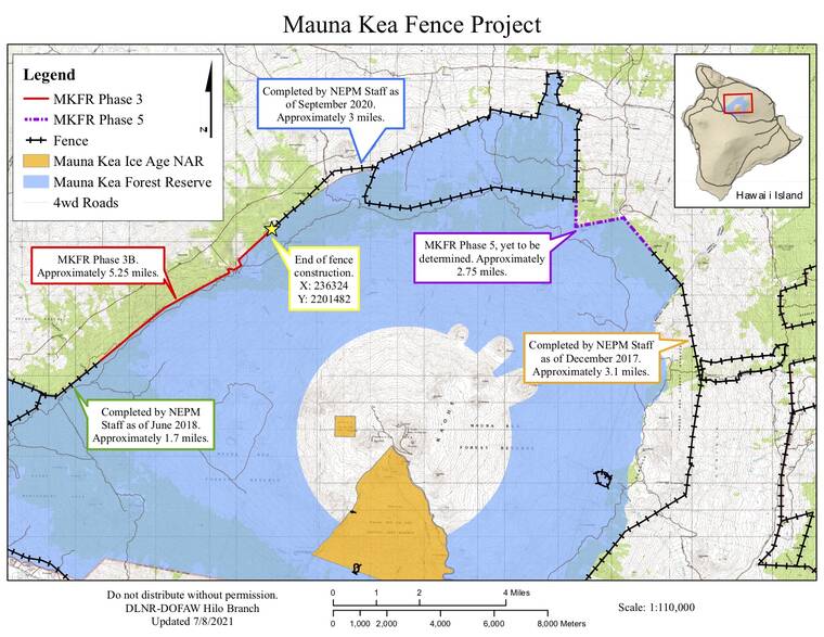 Another five miles of fencing around a portion of Maunakea is slated for construction this year, which will almost, but not quite, enclose the upper slopes of the mountain after more than 10 years.