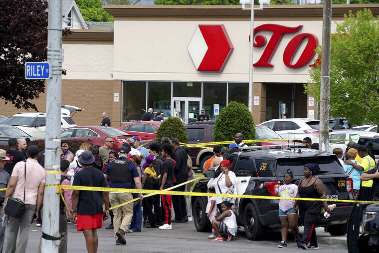 BUFFALO, N.Y. — A white 18-year-old wearing military gear and livestreaming with a helmet camera opened fire with a rifle at a supermarket in Buffalo, killing 10 people and wounding three others Saturday in what authorities described as “racially motived violent extremism.”