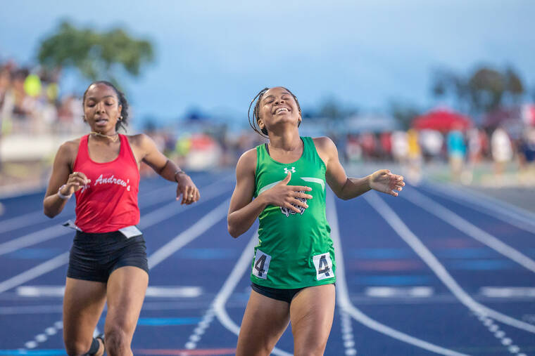 It had been a minute, but Konawaena’s Caiya Hanks and St. Andrew’s Olivia Reed remembered one another from competing three years ago as freshmen sprinters, and they decided to reminisce.