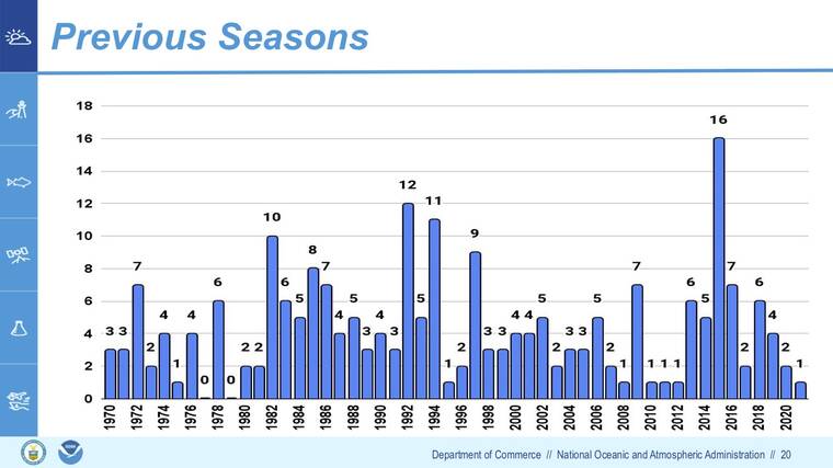 In 2021, the NWS predicted two to five cyclones, but only one actually developed.