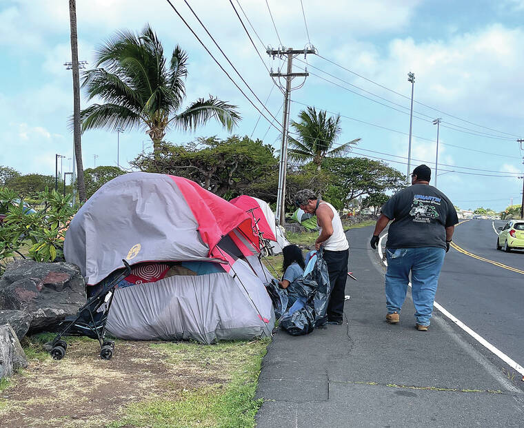 Messina said the camping problem began about a month ago when the county hired security to patrol Old Kona Airport at night, resulting in people moving from the bushes inside the park to the more visible area on Kuakini Highway.