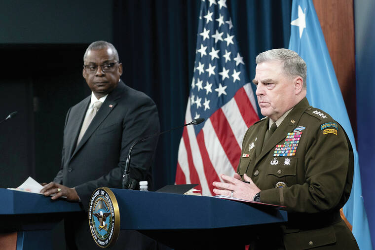 And Gen. Mark Milley, chairman of the Joint Chiefs of Staff, said that “low-level” discussion is underway on how the U.S. may need to adjust its training of Ukrainian forces and on whether some U.S. troops should be based in Ukraine.