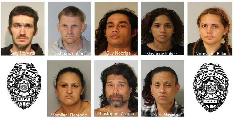 The four men and five women arrested are: Gary Horvath, 34; Joshua Stubbert, 35; Guy Nobriga, 28; Leihulu Watson, 49 (not pictured); Shivonne Kahee, 24; Nohealani Balai, 31; Momilani Florendo, 36; Christopher Asagra, 51; and Jessica Nasario, 39.
