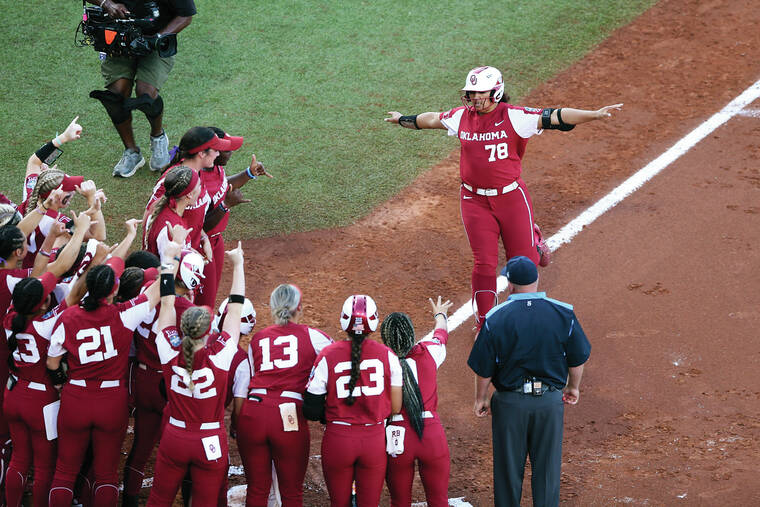 Alo’s second homer was her 34th of the season, matching the Oklahoma school record she set last season. Oklahoma coach Patty Gasso said she now expects homers when Alo steps to the plate.