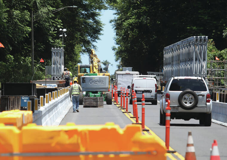 “The bridge will be returned to its unposted weight limit of 40 tons in July,” Shelly Kunishige, DOT spokeswoman, said Tuesday. However, she did not have a specific date in July for the project to be completed.