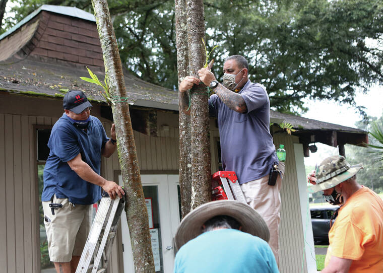 “This island is orchid paradise, so we’ve been wanting to do something like this for a long time,” orchid society member Ellen Train said. “When we received over 1,000 donated orchids (from Kalapana Tropicals), we had to start putting these around the island.”