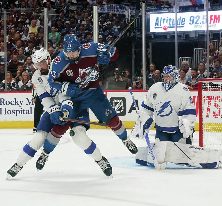 Colorado withstood Tampa Bay’s rally to improve to 13-2 in these playoffs and prevail 4-3 on Andre Burakovsky’s goal 1:23 into overtime.