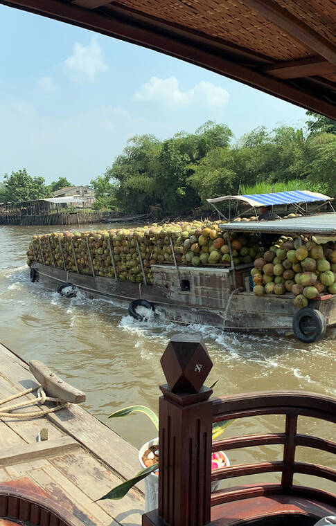 Photo courtesy of Voltaire Moise Harvested coconuts being shipped to market for coconut oil, copra and coir in Vietnam. Entire communities depend on coconut production in this region of the Mekong Delta where conditions are ideal for the palm.