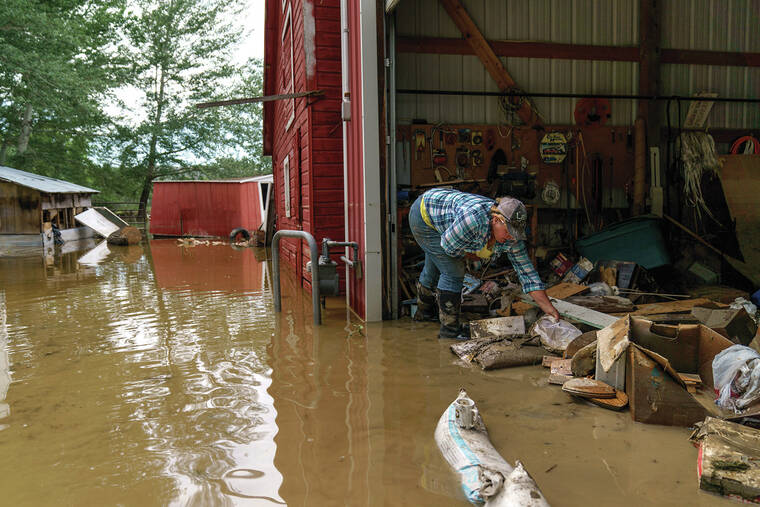 “We take care of each other,” O’Brien said as she and two longtime friends, Melody Murter and Aileen Rogers, combed through mud-caked items scattered across her property. O’Brien, an art teacher for the local school, had been fixing up her parents’ home with hopes of turning it into a vacation rental. Now she’s not sure it’s salvageable.