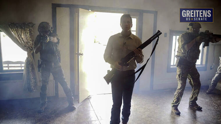 Greitens is among the Republican candidates in a highly competitive Aug. 2 primary to fill the seat being vacated by retiring GOP Sen. Roy Blunt. The provocative new ad appeared as Greitens looks to improve his standing in the polls, jolt lackluster fundraising and move past graphic allegations of domestic abuse made in a sworn affidavit filed by his ex-wife in March in their child custody case.