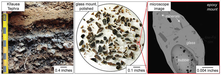 Like the pages of a book, the stories of Hawaiian volcanoes are “written” in layers of rock. When Hawaiian Volcano Observatory scientists collect and study volcanic samples, the rocks and minerals go through several stages of preparation and analysis that allow scientists to “translate” the encoded stories.