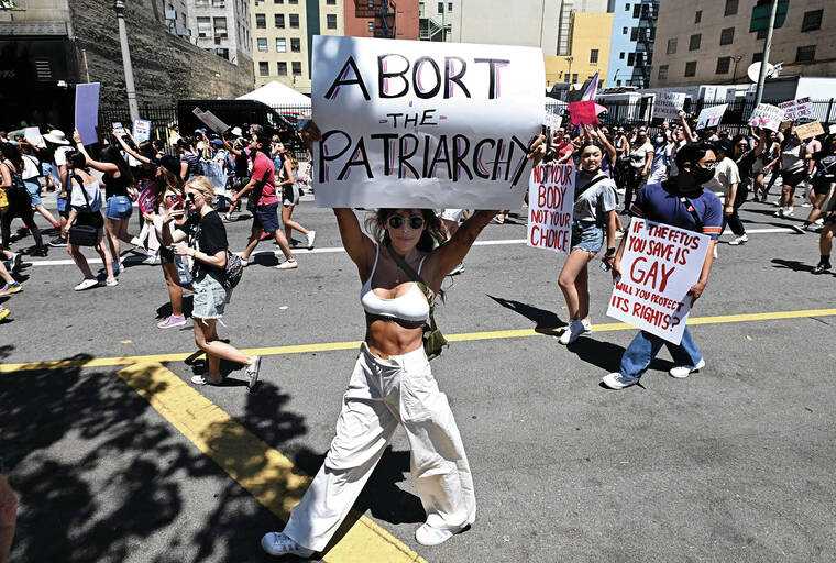 In the LA demonstration, one of several in California, hundreds of people marched through downtown carrying signs with slogans like “my body, my choice” and “abort the court.”