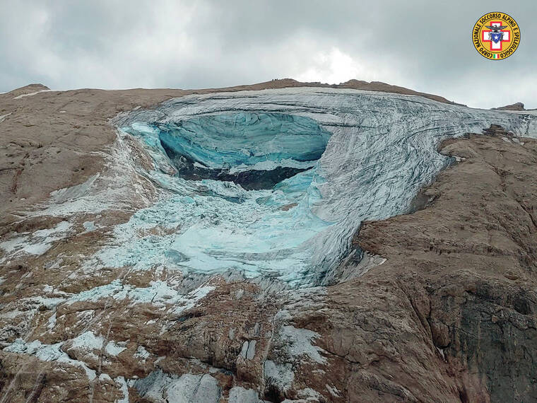 The glacier, in the Marmolada range, is the largest in the Dolomite mountains in northeastern Italy and people ski there in the winter. But the glacier has been rapidly melting away in recent years. Experts at Italy’s state-run CNR research center, which has a polar sciences institute, says the glacier won’t exist anymore in the next 25-30 years and much of its volume is already gone.