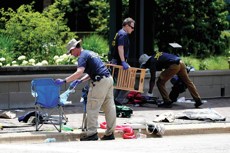 A day later, baby strollers, lawn chairs and other items left behind by panicked parade goers remained inside a wide police perimeter. Outside the police tape, some residents drove up to collect blankets and chairs they abandoned.