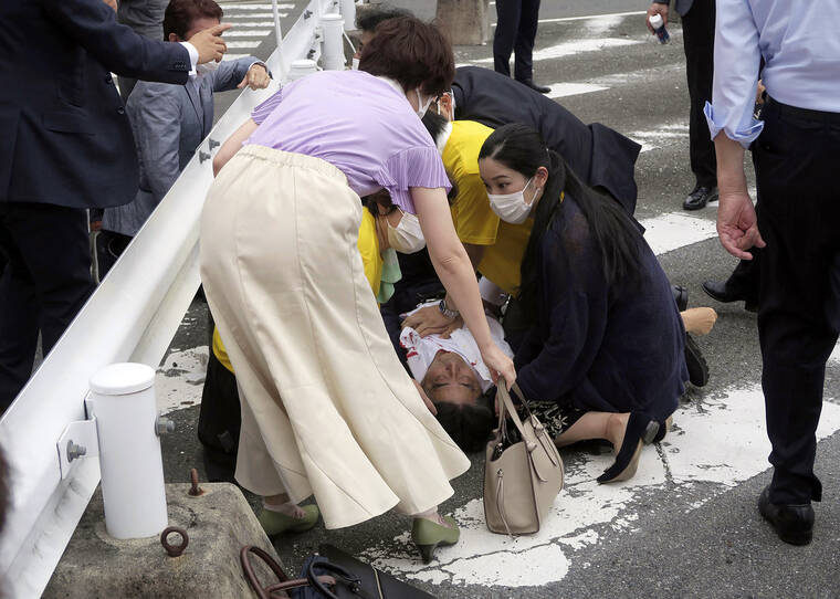 TOKYO — Japan’s former Prime Minister Shinzo Abe was shot during a campaign speech Friday in western Japan and was airlifted to a hospital but he was not breathing and his heart had stopped, officials said.