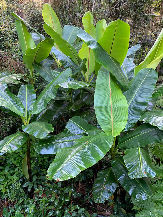Third is that varieties are important. There are more than a thousand varieties worldwide and more than one hundred may be found here. Identification is not easy unless you really study. The best way to know your varieties is to obtain them from a reliable nursery. If you get keiki from a neighbor, make sure they are free of disease. The dwarf varieties like the Cavendish or Chinese is better adapted to small garden conditions as it has a short, stout stem from 4 to 7 feet tall, with broad leaves borne on short pedicles. It is somewhat hardier and more wind resistant than taller varieties. The fruit is of medium size, thin skinned, and of good quality. Growing larger to 20 feet, the Brazilian banana types are hardy and prolific “Williams Hybrid” is larger fruited than the other two and yet not as tall as the Apple. It is superior for home gardens and is grown commercially. Other less known varieties with potential are “Cuban Red”, “Dwarf Jamaican”, and the “Thousand Finger” of Indonesia. A good resource book for identifying varieties is ‘The World of Bananas in Hawaii’ by Angela Kay Kepler and Francis G. Rust. The book covers just about everything you ever wanted to know when it comes to this delicious and nutritious fruit. This and other books on gardening are a great way to improve your gardening expertise.