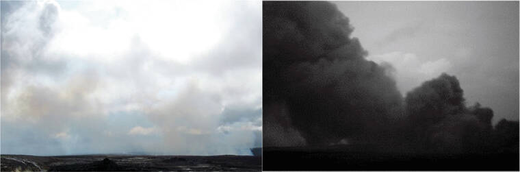 The volcanic gas plume at the summit of Kilauea Volcano in Hawaii Volcanoes National Park is often the most visible indication of the ongoing eruptive activity during the daylight hours. On some days, it can also be quite easy to smell the gas plume, if the winds blow it toward accessible areas.